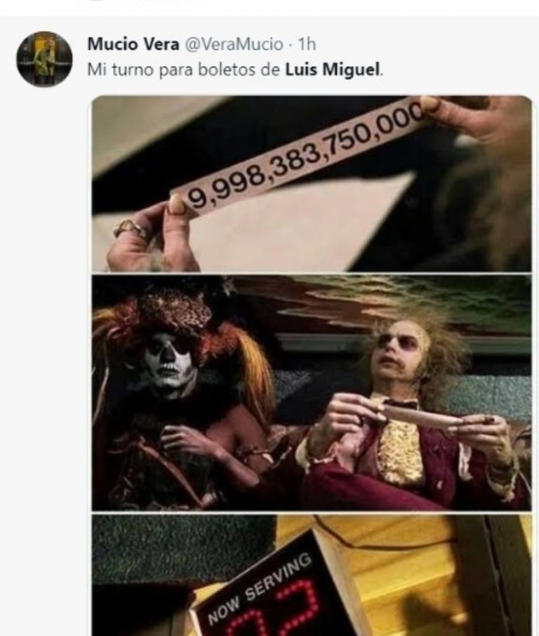 Ahora que estamos formados en una fila que no parece tener fin y que el destino nos dice que nos quedaremos con las ganas de ver a «Micky» en el escenario, ha llegado la lluvia de memes que si bien nos muestran lo irónico de la vida, también hacen que pasemos un rato más ameno en la espera del ticket más barato del condado.